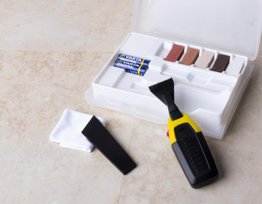 VINYL FLOOR AND TILE INSTRUCTIONS Kit contains: 7 intermixable repair compounds, grain paper pack, powdered hardener, clear repair compound, spatula, heat tool and instructions. ... Return Doc